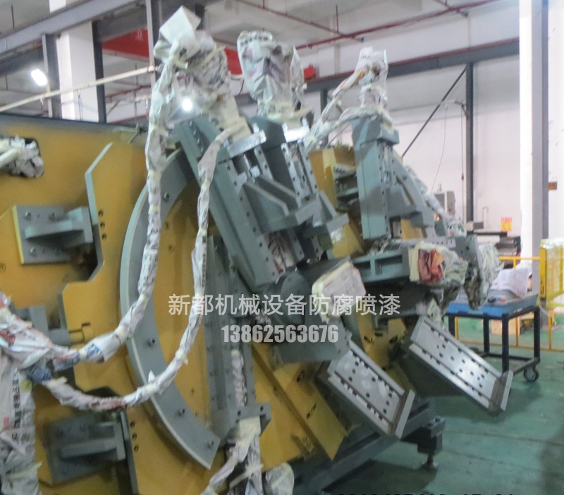 防銹漆、噴涂防銹漆這兩個可讓金屬表面不與大氣、海水等的化學或電化學腐蝕的涂料。機械設備噴漆翻新分為物理性和化學性防銹漆兩種。物理性可以靠顏料和漆料去配合,慢慢形成致密的漆膜去防止腐蝕性物質的侵入,例如鐵紅、鋁粉、石墨防銹漆等,化學性主要是防銹顏料的化學抑銹作用、鋅黃防銹漆等。用于橋梁、船舶、設備噴漆、管道等金屬的防銹。